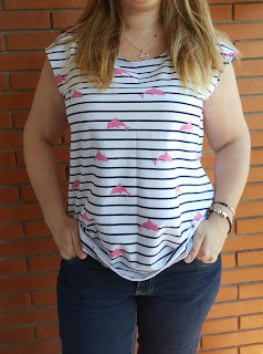Le he puesto bies en cuello y sisas de la misma tela y el bajo con un dobladillo normal.... Creo que este patron tiene mucha salida y mi cabeza ya esta dando vueltas con alguna modificación que quedaría interesante...... jajajajaja ...